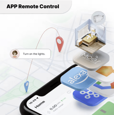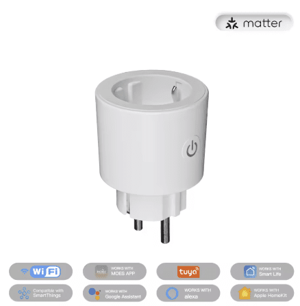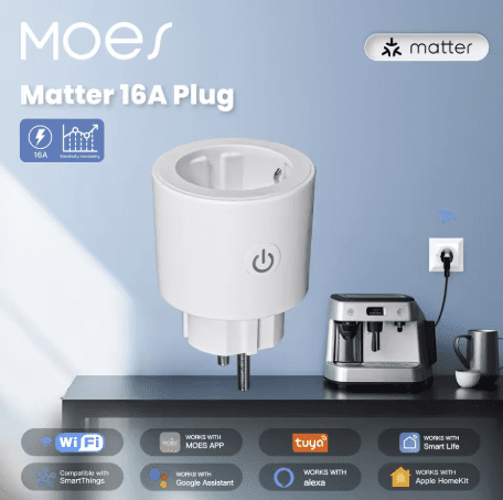 With the MOES Smart Plug Matter Wi-Fi Socket 16A You effortlessly turn any device into a smart device. Whether it's your lighting, coffee maker, or fan – you have full control via your smartphone, even when you're not at home. Thanks to Matter technology This smart plug works seamlessly with all major smart home platforms such as Apple Home, Google Home, Alexa, and more!