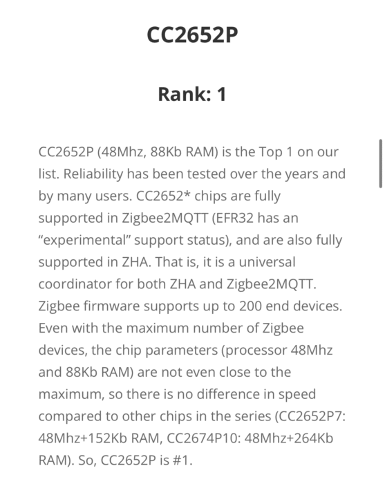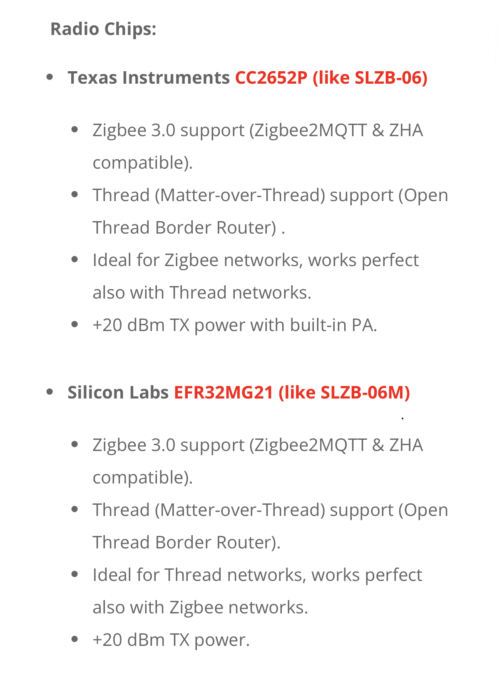 - Texas Instruments CC2652P: Zigbee 3.0, Thread (Matter-over-Thread)