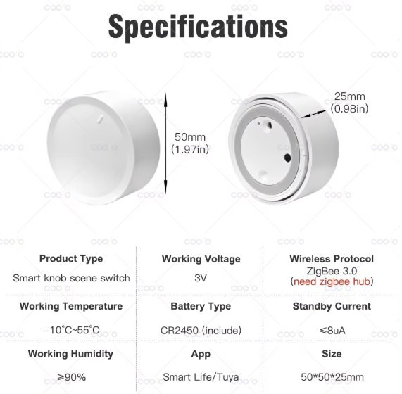- Type: Zigbee slimme knop scèneschakelaar