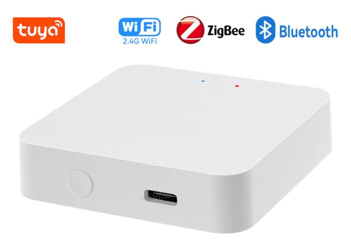 De Wireless Wifi Tuya Multi Mode Gateway (Zigbee 3.0 + Bluetooth) is een compacte smart home gateway met ondersteuning van Tuya Zigbee en Bluetooth apparaten met een draadloze aansluiting. U bediend zo al uw verschilldende Tuya Wifi, Tuya Bluetooth and Tuya Zigbee devices vanuit 1 App (Tuya Smart , Smart Life). U kunt 128 apparaten aan de wireless Wifi Tuya Multi Mode Gateway koppelen.