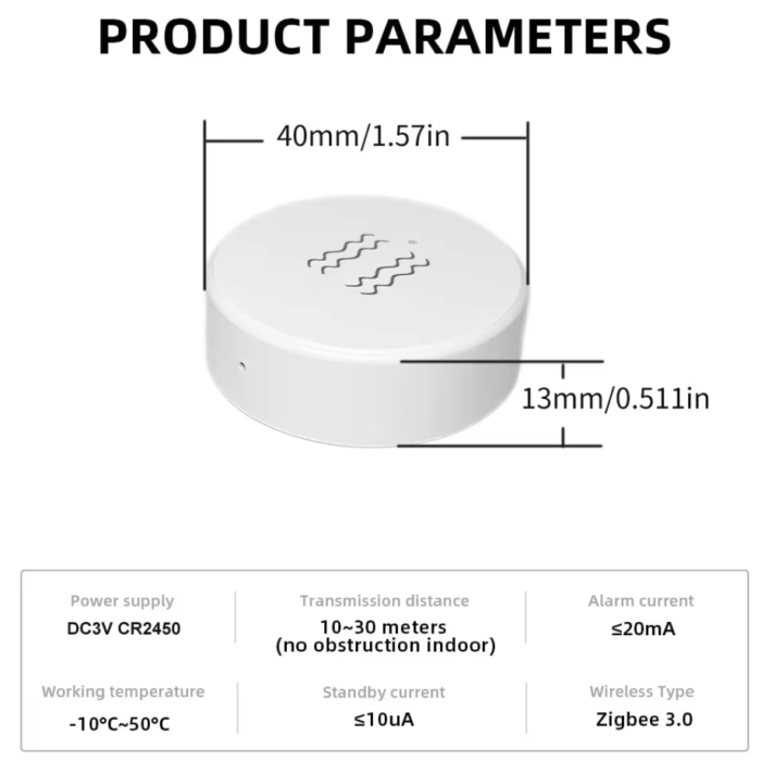 - Energiezuinig: De sensor werkt op batterijen en heeft een lange levensduur, waardoor u zich geen zorgen hoeft te maken over frequente vervanging.